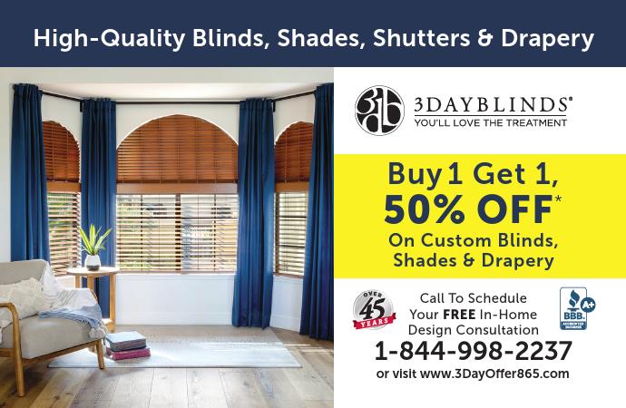 Buy 1 Get 1 50% Off On Custom Blinds, Shades & Drapery!