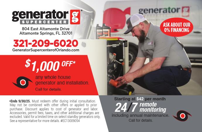 $1000 Off Any Whole House Generator & Installation!
