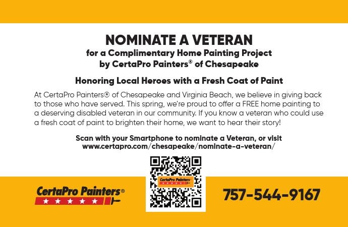 Nominate A Veteran For A Complimentary Home Painting Project by Certa Pro Painters Of Chesapeake!