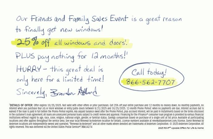 25% Off Windows & Doors + No Money Down, Monthly Payments And Interest For 12 Months!